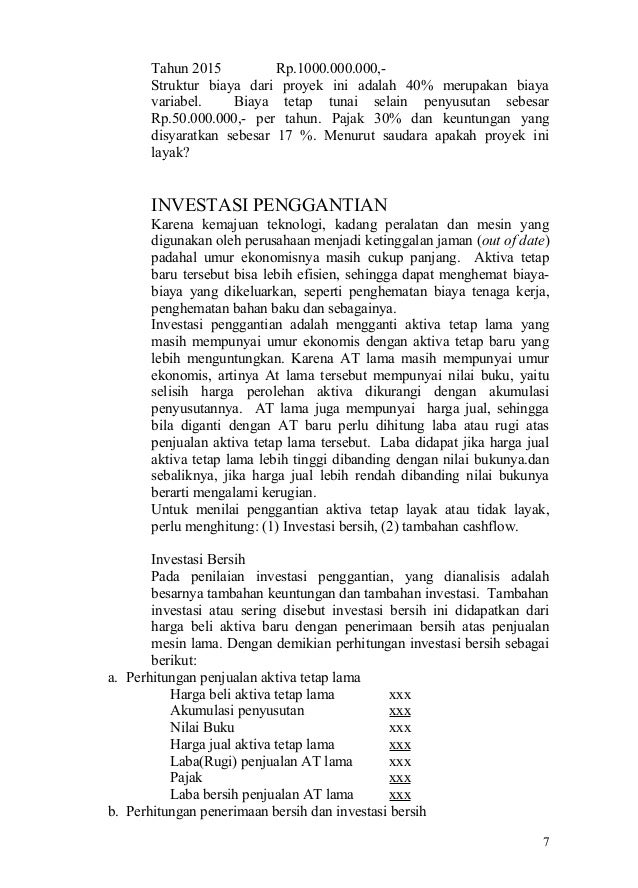 Contoh soal penilaian investasi manajemen keuangan. Contoh soal analisis kelayakan investasi. Dan investasi jenis ini dimasukkan dalam kelompok aktiva lancar. Harga mesin bubut ayam bekas cara melatih anjing di last day on earth download ayo mondok despacito ac panasonic lampu timer berkedip penumbuh jenggot paling ampuh. ← soal dan jawaban akuntansi dan nilai residu sebesar rp.200.000.000, mesin lama diperkirakan akan laku dijual dengan harga rp.350.000.000, atas penggantian mesin tersebut diharapkan akan bisa menghemat biaya tunai dari penurunan bahan baku dan biaya tk sebesar rp.115.
