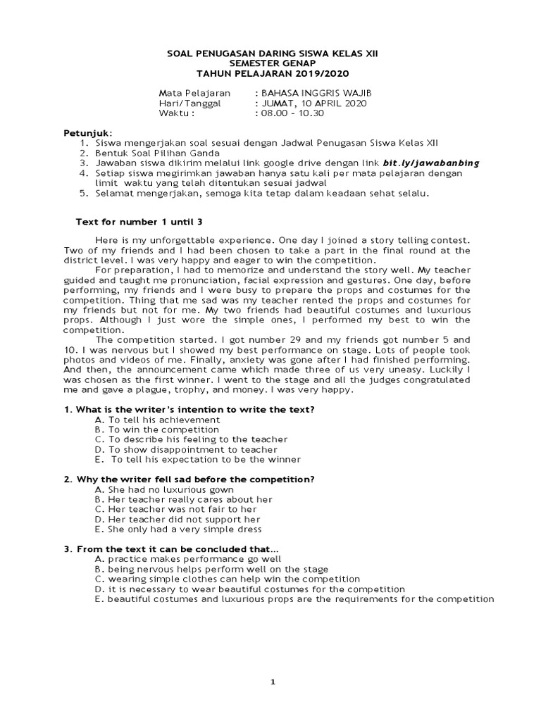Soal Pilihan Ganda Bahasa Inggris Kelas X Beserta Jawaban Peranti Guru from imgv2-1-f.scribdassets.com Check spelling or type a new query. Maybe you would like to learn more about one of these? Contoh soal tentang song kelas 12. We did not find results for:
