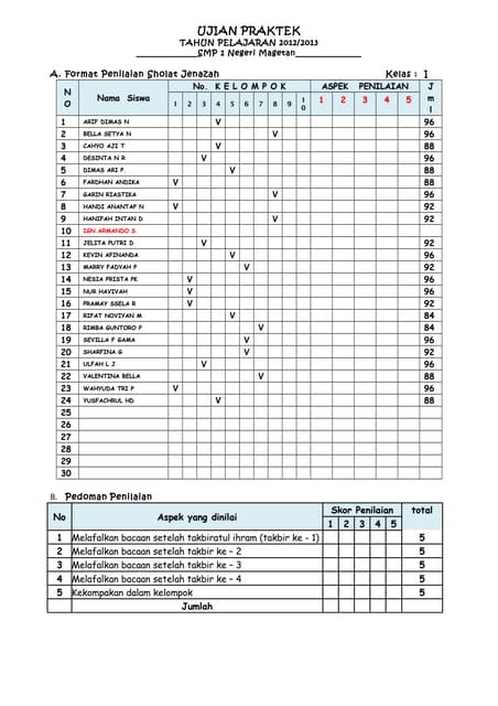 Simpan simpan format penilaian ujian praktek untuk nanti.